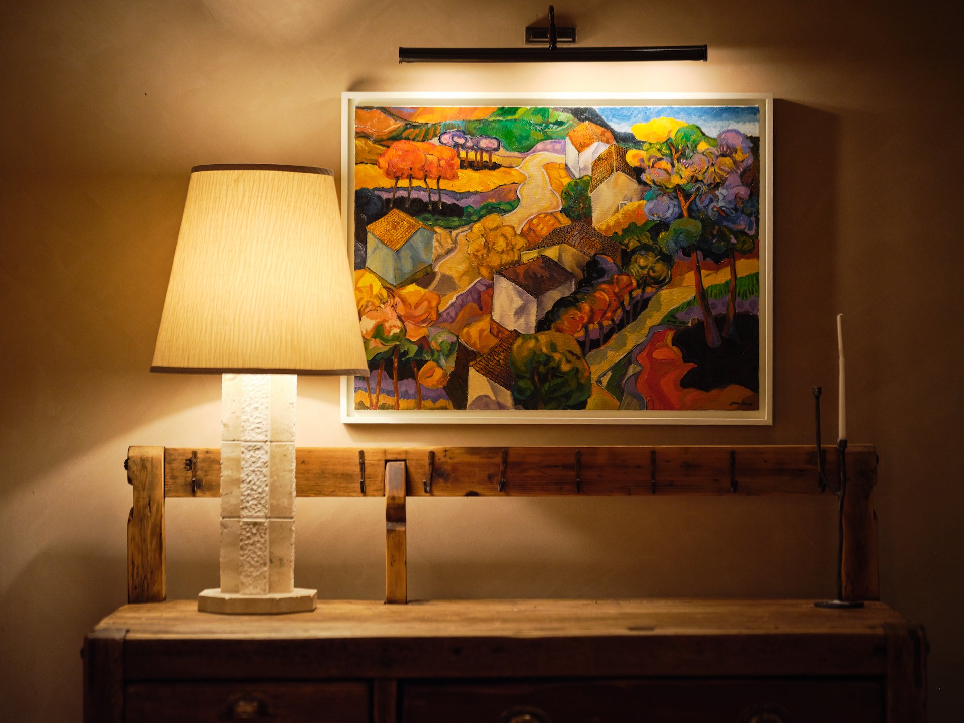 The lighting is designed to feel warm and glowing, making it feel like you are in an Italian family home, albeit an expertly designed one, with glass chandeliers and vintage sconces adorning the walls.