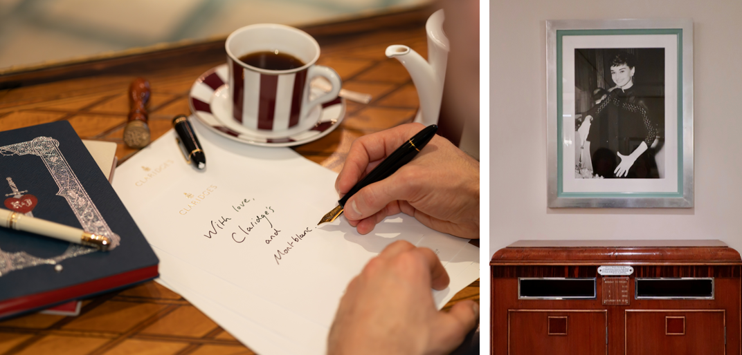 Claridge’s letter box has quietly witnessed generations of correspondence since the hotel first opened in 1856. A photograph of Audrey Hepburn, captured at a 1953 reception, still graces the space above the letter box - a charming reminder of the romantic legacy the hotel carries. For Valentine’s week, the letter box will be renamed the Claridge’s & Montblanc Love Letter Box, honouring its enduring role in the art of handwritten communication.